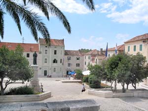 Zum Kacic-Platz ist es von der Hafenpromenade nur ein Paar Schritte hinein in die Altstadt. Der terrassenförmig ans Gelände angepasste Platz bietet sich für Streifzüge durch die abzweigenden Gassen ab. Dort finden sich viele kleine Läden, Boutiquen Cafés und Restaurants. An der Nordseite des Kacic-Platzes erhebt sich die barocke Pfarrkirche St. Markus, die zwischen 1700 und 1776 erbaut wurde. Bis 1828 war sie auch Episkopalkirche. In ihrem Innern sind der silberbeschlagene Altar der Rosenkranzmadonna von 1818 und in der Seitenkapelle der Hauptaltar aus inkrustiertem Marmor zu sehen. Letzterer ist eine venezianische Arbeit aus dem 18. Jahrhundert. Gleich neben dem Eingang am Treppenaufgang hängen Informationsblätter mit weiteren Details aus der Kirchengeschichte. Wer mag, kann sich auf dem neben der Kirche gelegenen Markt mit frischem Obst und Gemüse sowie Schnäpsen oder Honig eindecken.