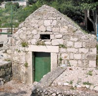 ![]() Hafen von Igrane mit Sommerhaus Simic-Ivanisevic Am kleinen Hafen von Igrane fällt das barocke Sommerhaus Simic-Ivanisevic auf, das im 18. Jahrhundert gebaut wurde, jetzt aber verlassen ist. Ganz offensichtlich hat das Gebäude glanzvollere Tage gesehen – jetzt allerdings blättert der einst dunkelrote Putz von der Fassade und gibt das Mauerwerk dem fortschreitenden Verfall preis. Gleich daneben ist eine kleine Kirche zu sehen, vor der zwei Büsten an kroatische Persönlichkeiten erinnern. Beim Bummel durch die Gassen des Dorfes, fallen weitere Ruinen alter Natursteinhäuser auf. Ob die einstigen Bewohner ihr Dorf verlassen haben? Am Ortsausgang von Igrane in Richtung Zivogosce – auf der Verbindungsstraße auf halber Höhe unterhalb der Hauptstraße – steht die Ruine eines Hotelkomplexes, an dem der Zahn der Zeit ebenfalls deutlich sichtbar nagt. Das direkte Umland von Igrane ist terrassiert und wird für den Anbau von Oliven und Wein genutzt. Allerdings haben viele Bewohner von Igrane auf der gegenüber liegenden Insel Hvar Grundstücke gekauft, die sie bestellen. In Gronje Igrane soll im Zweiten Weltkrieg die Waffenfabrik der Partisanen tätig gewesen sein, heißt es in einer Ausgabe von 2005 von »Makarska rivijera info«.